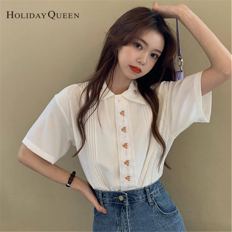 HolidayQueen Girl Summer White Shirt Women's Design Sense Niche Top Summer Short-sleeved ShirtWomen's clothing HQP0903
