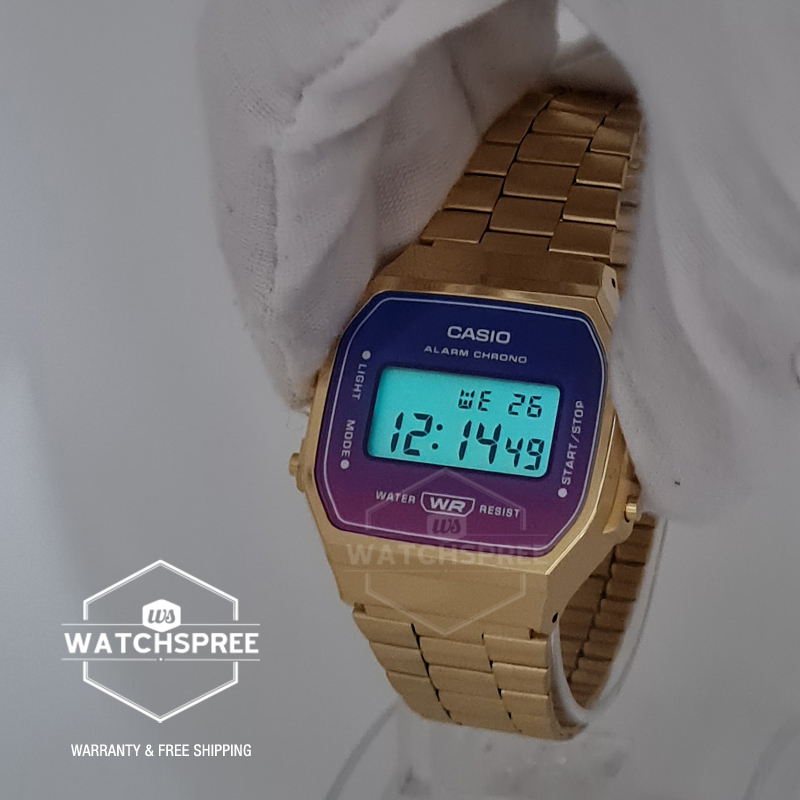 Revel in the fusion of retro nostalgia and fashion styling with a watch face in gradated hues.